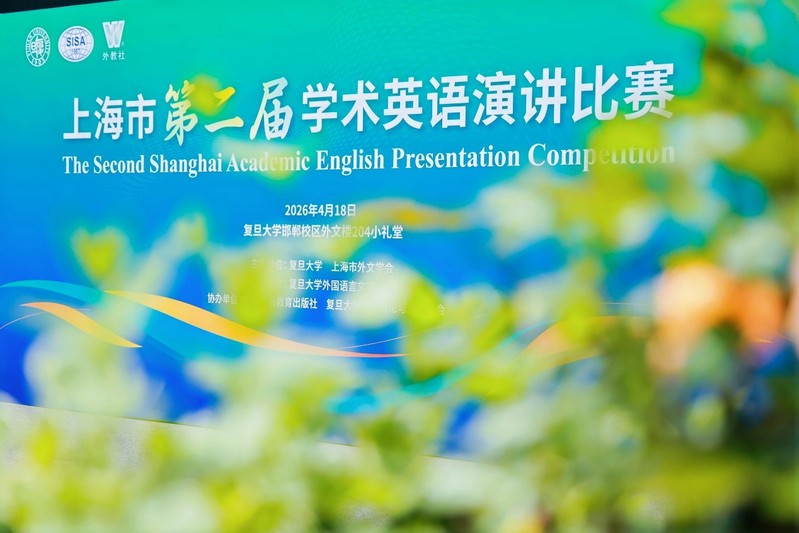 2026年4月18日,由复旦大学、上海市外文学会主办,复旦大学外国语言文学学院承办,上海外语教育出版社及复旦大学英语辩论与演说协会协办的上海市第二届学术英语演讲比赛决赛在复旦大学邯郸校区成功举行。来自上海市各高校的21名选手齐聚决赛舞台。复旦大学副校长陈志敏教授,上海市外文学会副会长、上海外国语大学副校长王欣教授,上海外语教育出版社丁毅社长、复旦大学教务处处长林伟教授,以及复旦大学外国语言文学学院薛海霞书记出席大赛。